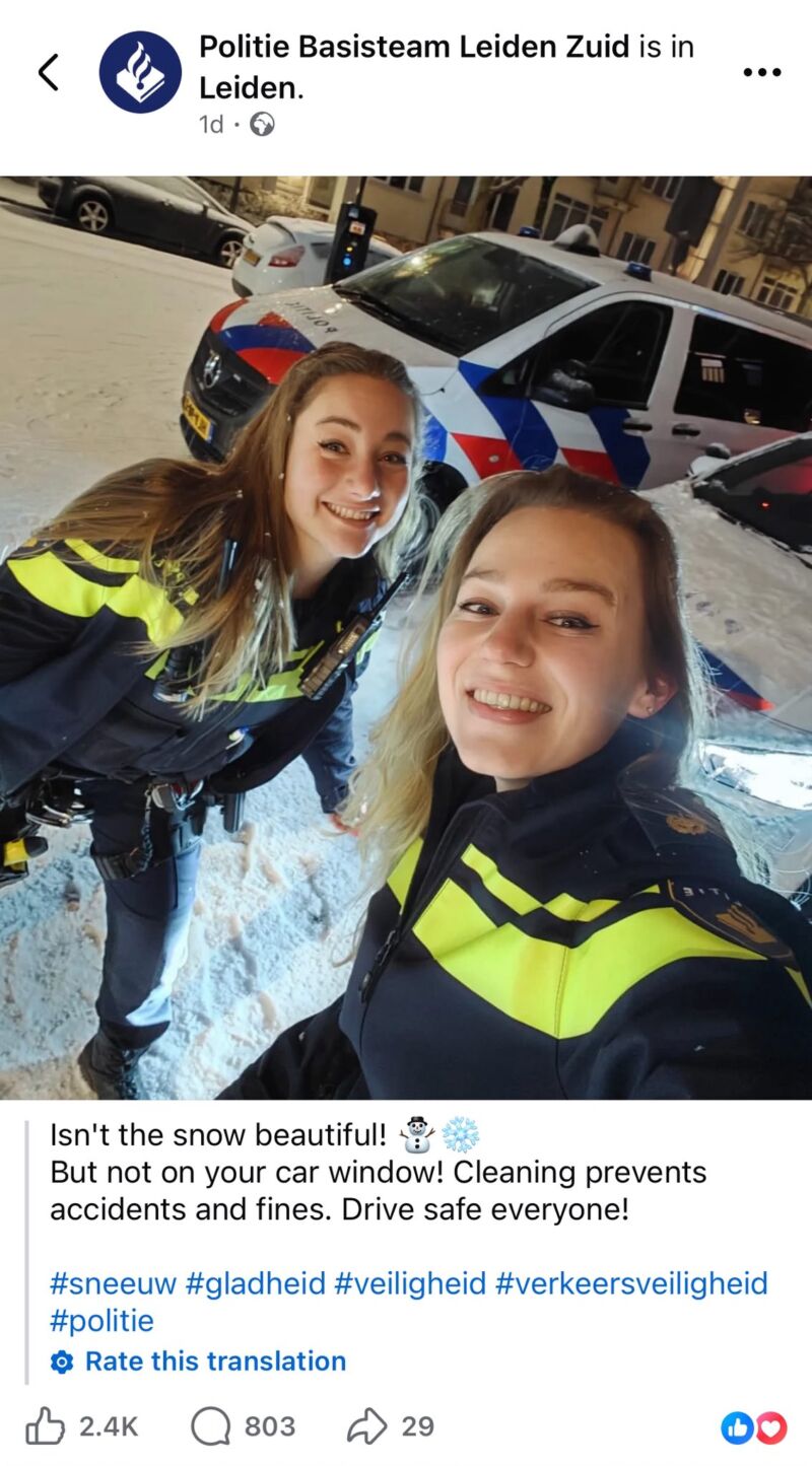 警察の公式チャネルが自撮り画像をポストしてるのがオランダっぽい🇳🇱😂